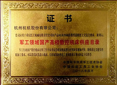 軍工行業(yè)國產(chǎn)數(shù)控機(jī)床應(yīng)用工作專家委員會嚴(yán)格篩選并通過在應(yīng)用現(xiàn)場效果評價,最終確定我公司開發(fā)的MGKF600/8數(shù)控高精度立式復(fù)合磨床列入了軍工領(lǐng)域國產(chǎn)高檔數(shù)控機(jī)床供應(yīng)目錄,杭機(jī)股份將作為軍工采購國產(chǎn)機(jī)床的重點(diǎn)推薦企業(yè)。