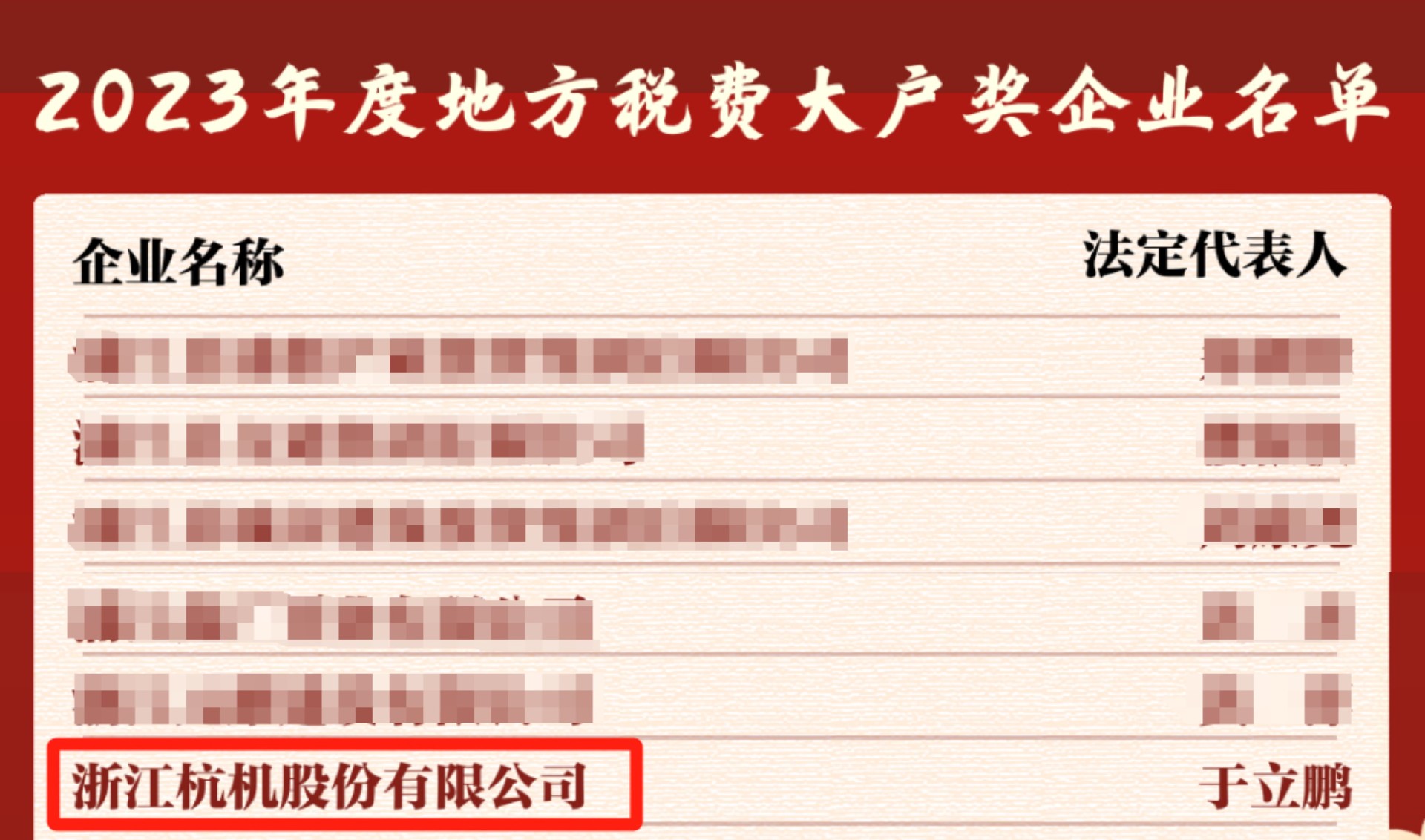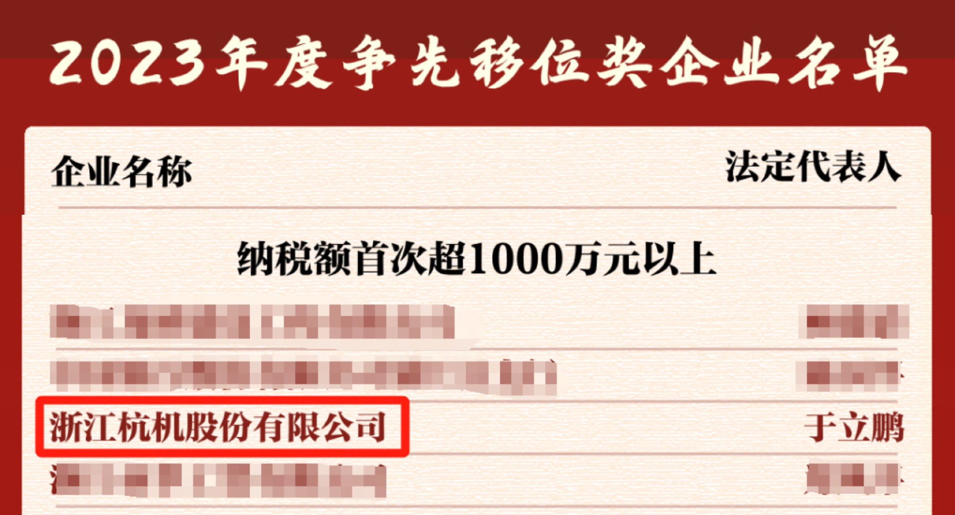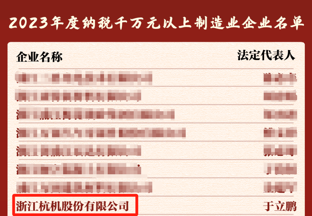 今天下午,浦江發(fā)布2023年度納稅大戶榮譽榜單,浙江杭機股份有限公司多次上榜,榮獲多重獎項。